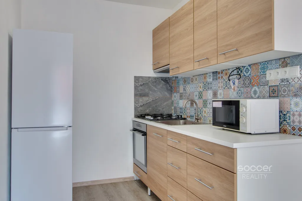 Po vstupu vás přivítá předsíň se samostatnými vstupy do koupelny s WC, obývacího pokoje s kuchyňským koutem a ložnice. Z obývacího pokoje je pak vstup na prostornou lodžii. Celý byt je po kompletní rekonstrukci. Byt je zařízen novou kuchyňskou linkou s novými spotřebiči. Součástí kuchyňského koutu je kuchyňská linka s varnou deskou, troubou a digestoří. Byt je centrálně vytápěn. Na podlaze je v koupelně položena dlažba, v ostatních místnostech vinyl. Okna jsou nová a jsou plastová. Koupelna je vybavena sprchovým koutem.