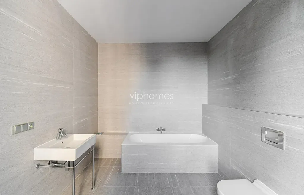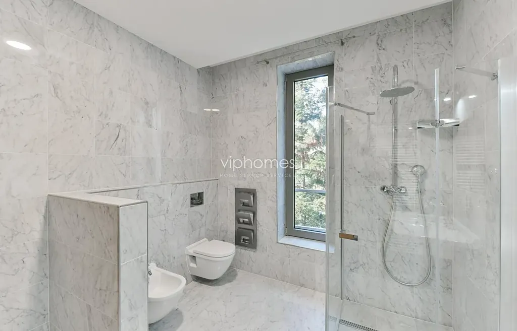 Druhá část bytu je oddělená, nachází se zde koupelna se sprchovým koutem, toaletou a bidetem, šatna. Další místnost lze využít jako pracovnu či pokoj pro hosty a ložnice mají vestavěné skříně.