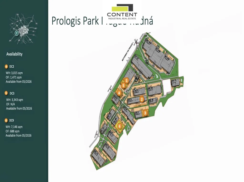 V zastoupení majitele a bez provize nabízíme industriální prostory pro sklad nebo výrobu, umístěné v rámci nového, moderního komerčního parku, přímo u dálnice D5.