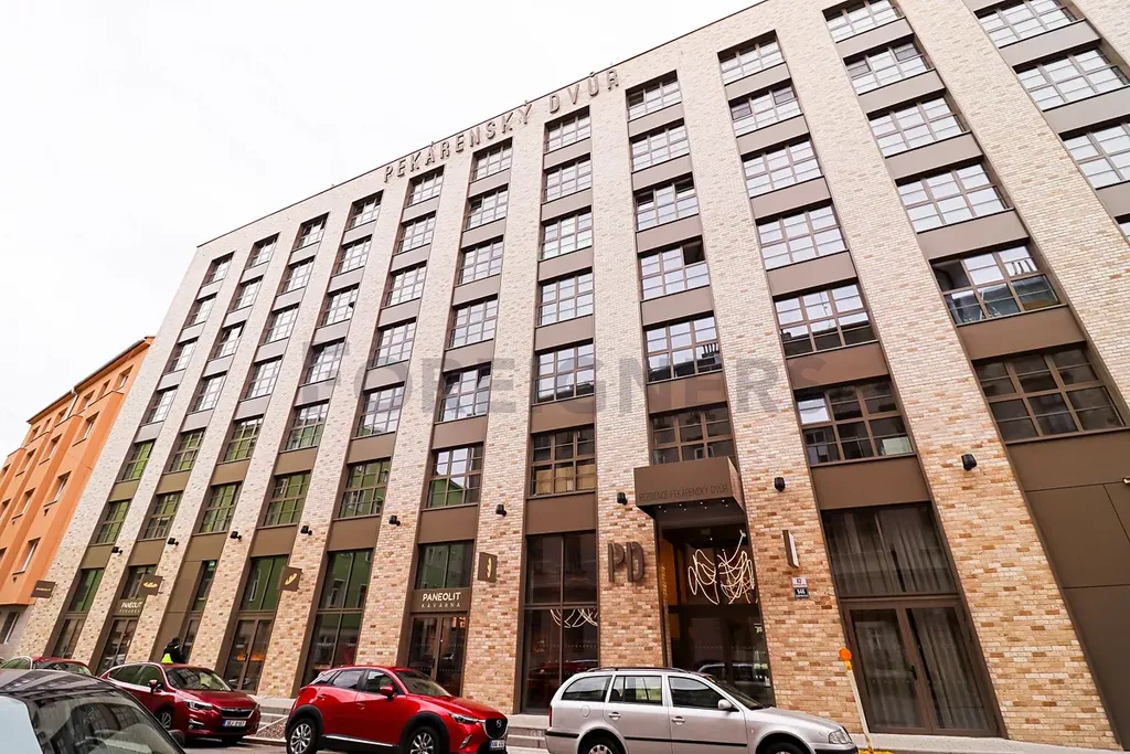 Pronájem moderního a velkého bytu 2+kk s balkonem, sklepem a parkovacím místem v podzemní garáži – Pekárenský dvůr, Brno – Bratislavská