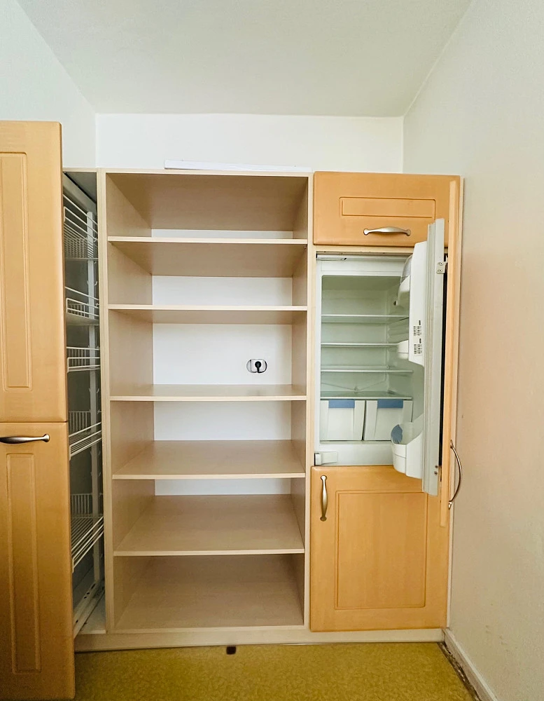 Dlouhodobý pronájem prakticky řešenému bytu 2+kk v 9. nadzemním podlaží s výhledem do okolí - umístěn na uzavřené pavlačové chodbě s oknem / pouze dva byty. Celý byt prošel před 15 lety modernizací – nespornou výhodou je zděná koupelna / vybavena sprchovým koutem a spojena s WC (novější typ závěsné Geberit WC modul) - obklad a dlažba v neutrálním odstínu, bílý koupelnový nábytek. Další předností, jež Vás zaujme, je prakticky řešená rohová kuchyňská linka včetně sklokeramické varné desky, elektrické horkovzdušné trouby, komínové nerez digestoře, vestavěné pračky a myčky šíře 600 mm, a dále vestavěná lednice i spižní skříně – vše v přírodním odstínu světlého buku / jednoznačnou prioritou je dostatek úložného prostoru – policový systém. Orientace obývacího pokoje včetně kuchyňského koutu je západní / příjemné odpolední sluníčko. Naopak ložnice má orientaci na severovýchod, zde byla instalována nová vestavěná šatní skříň / světlý odstín / přes celou stěnu pokoje. Následně i v předsíni je dostatečný prostor pro botník, nedílnou součástí jsou závěsné skříňky v horní části pod stropem a drobný nábytek, svítidla, okenní žaluzie a garnyže.