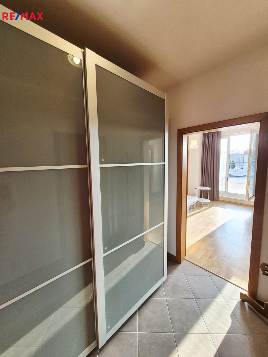 Nabízíme k pronájmu plně vybavený byt 1+kk o ploše cca 34 m² s terasou o velikosti cca 41 m², umístěný ve 3. patře (4. NP) cihlového domu s výtahem.