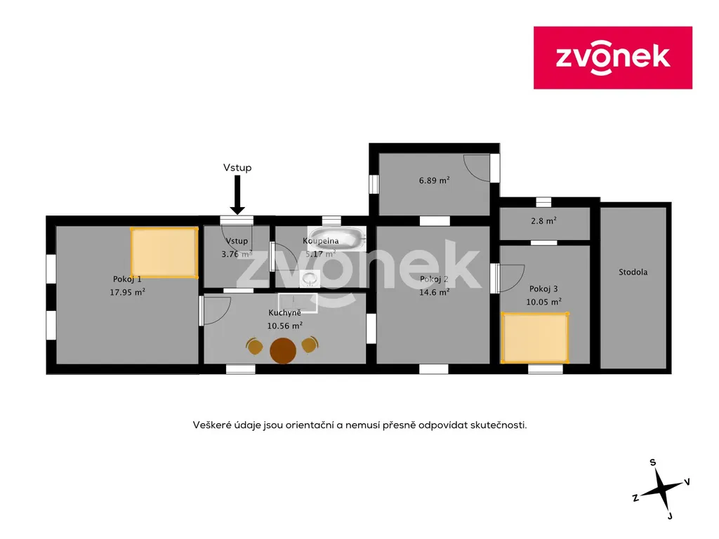 Velkou výhodou je možnost rozšíření obytné plochy – půda je nezateplená, ale při rekonstrukci lze vybudovat další pokoj.