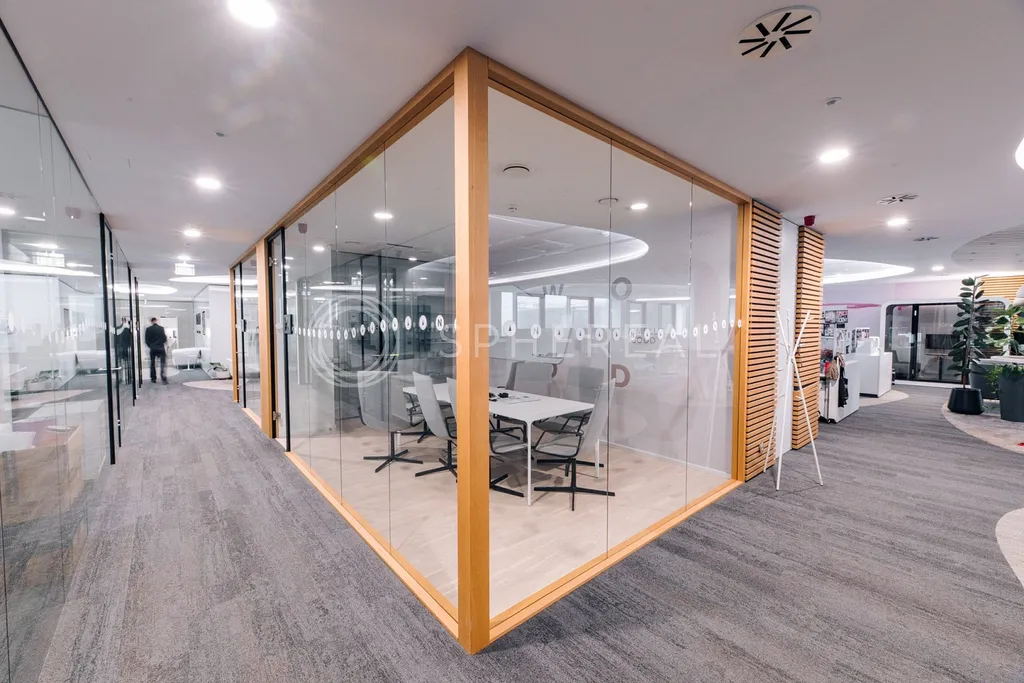 Kanceláře o ploše přibližně 860 m² se nachází v 5. NP budovy C a jsou vybudovány ve vysokém standardu jako open space se zasedacími místnostmi, kancelářemi a kuchyňkami. Je možné oddělit plochu od cca 450 m² a více, přičemž na výběr je z více možností v několika podlažích.