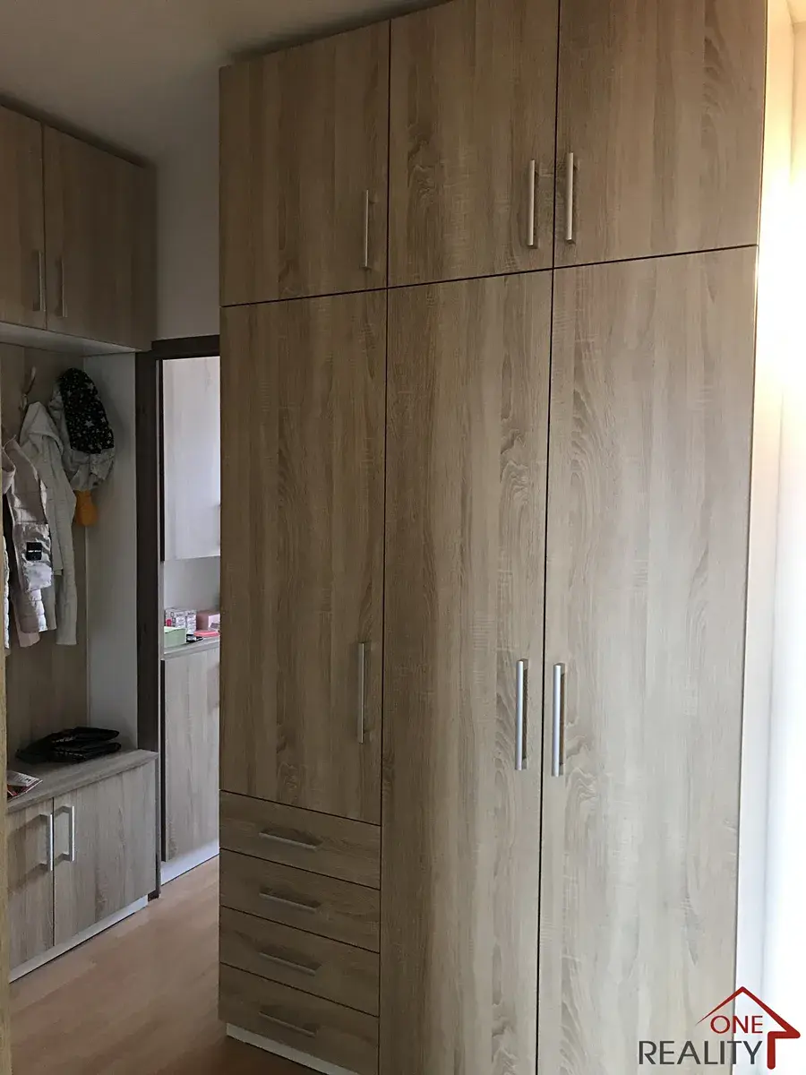 Dispozice bytu: předsíň s vestavěnou skříní, kuchyň s novou kuchyňskou linkou včetně lednice, dva samostatné pokoje bez vybavení, koupelna se sprchovým koutem a s pračkou, WC zvlášť.