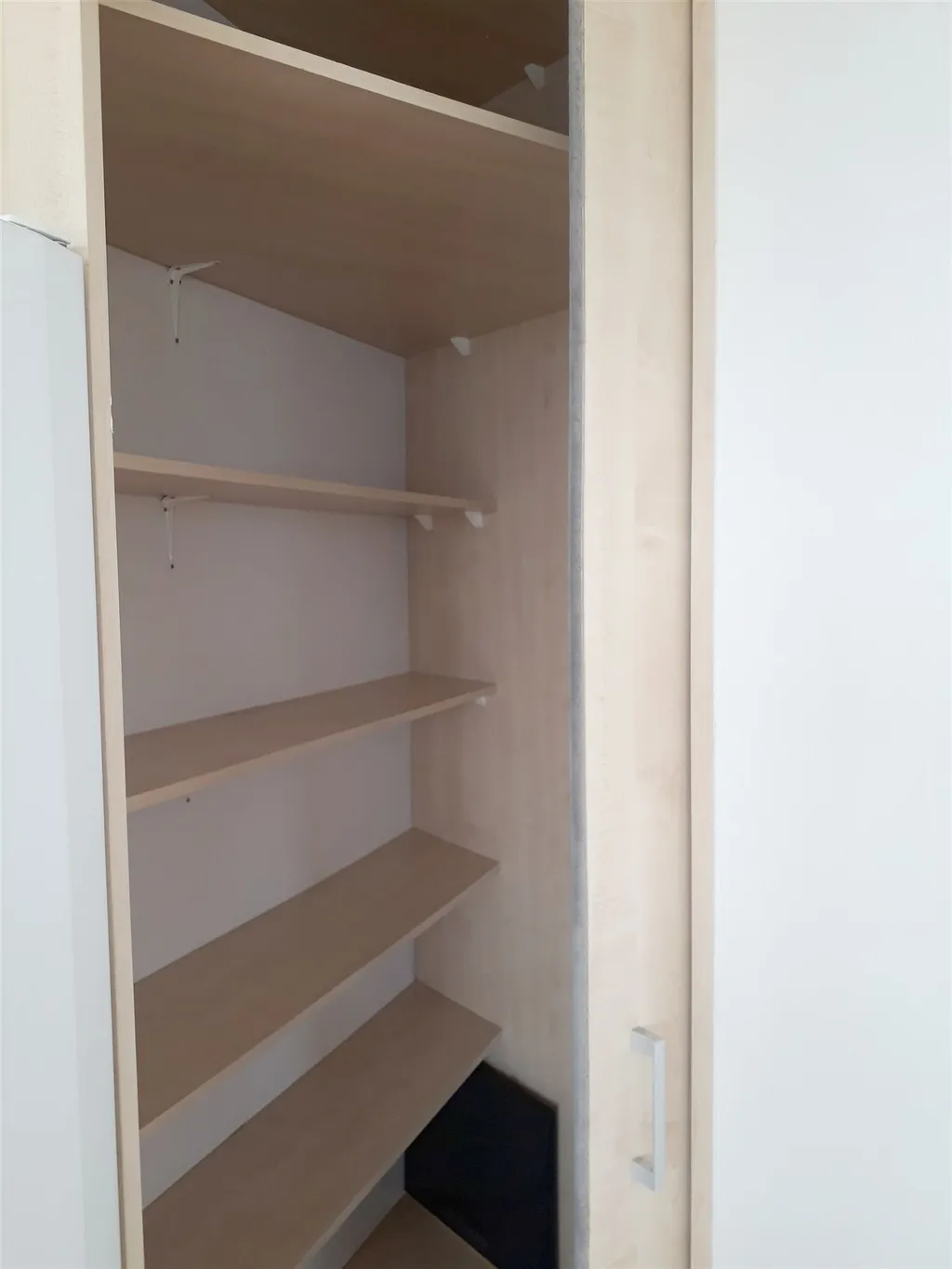 Byt je částečně zařízen, včetně ložnice. Koupelna disponuje sprchovým koutem a pračkou. Okna jsou vybavena žaluziemi, v bytě jsou plovoucí podlahy.