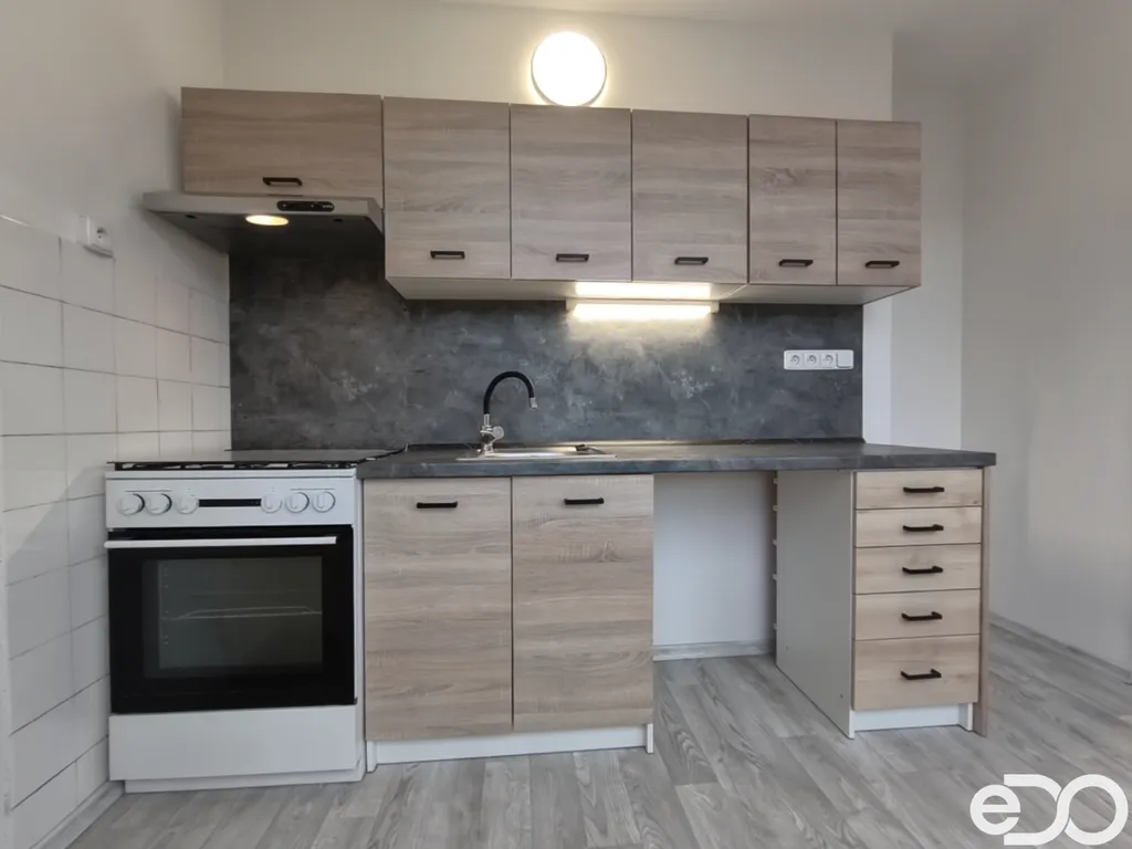 Byt má praktické a funkční uspořádání. Obývací pokoj je průchozí do kuchyně, čímž vzniká přirozený denní prostor. Kuchyně je vybavena kuchyňskou linkou a sporákem.