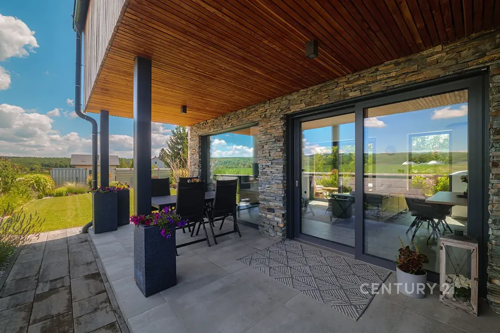 V domě jsou použity nadstandardních prvky, technologie a interiérového vybavení, které výrazně zvyšují komfort bydlení, estetickou hodnotu i energetickou soběstačnost. Dům disponuje FVE (12 panelů), tepelným čerpadlem a krbovými kamny, což zajišťuje nadstandardní energetickou soběstačnost. FVE GoodWe – výkon 4,5 kW, baterie 7,1 kWh, střídač 8 kW, tepelné čerpadlo Neoré 8GT (voda–vzduch) s funkcí podlahového vytápění a chlazení, Wallbox GoodWe 22 kW pro nabíjení elektromobilu.