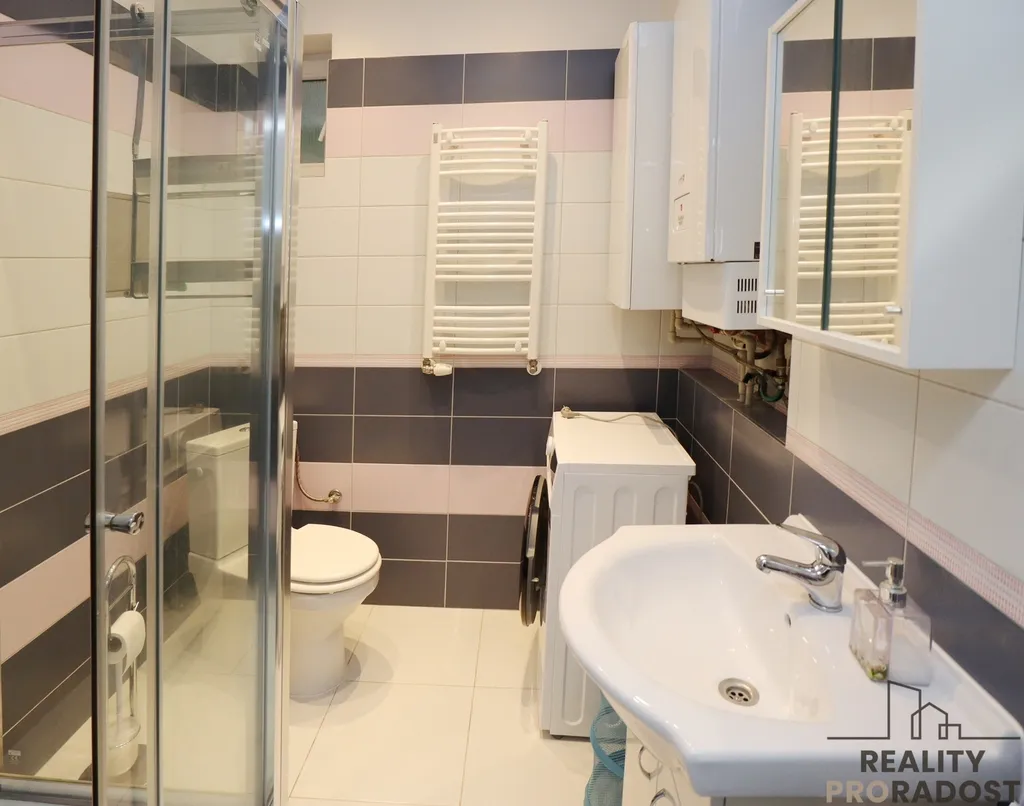 Koupelny: se sprchovým koutem, wc, pračkou a umyvadlem