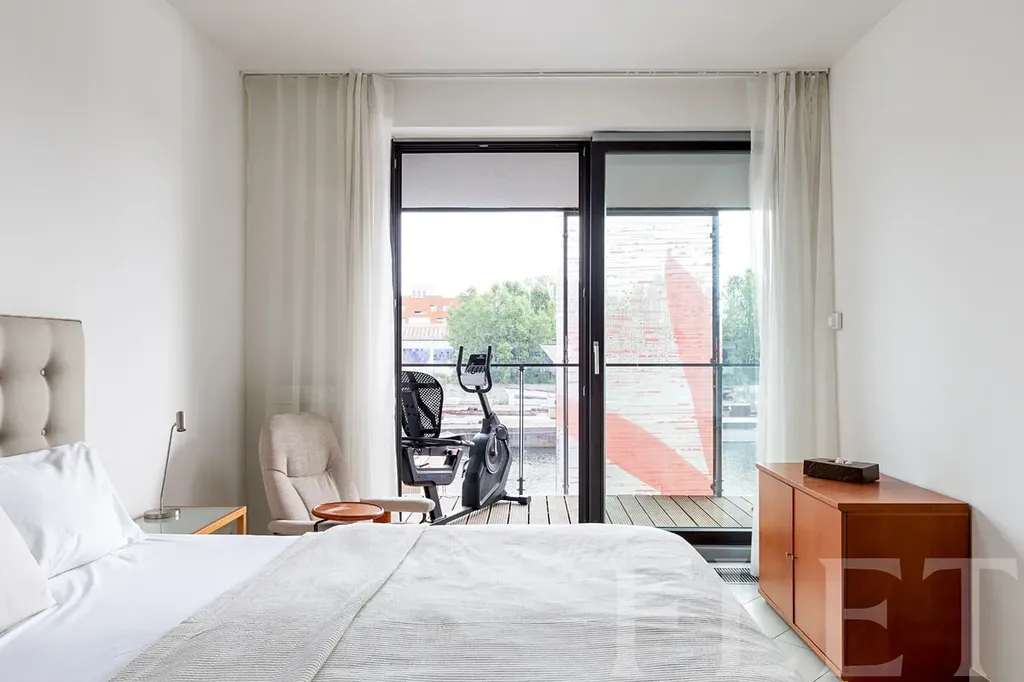 Věřte, že se Váš sen nyní může stát skutečností. Tato jedinečná nabídka v podobě pronájmu moderního bytu je v jedné z nejžádanějších lokalit a to přímo v ulici V přístavu, v Praze - Holešovicích. Velmi důmyslně řešený byt 2+kk o velikosti 70 m2 Vás nadchne. Díky velkým oknům je v bytě dostatek denního světla. Hlavní pokoj s kuchyňským koutem je rozdělen na jídelní část a obývací část, ze které se dostanete na prostornou terasu, která poskytuje již zmíněný výhled na řeku Vltavu. Na terasu se také dostanete přímo z ložnice, která je hned vedle obývacího pokoje.