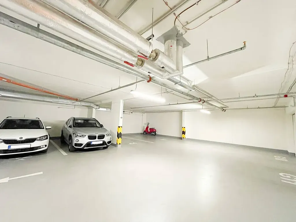 • Garážové stání a sklep – v této části Holešovic je parkování na ulici obtížné a zpoplatněné (modrá zóna), proto je garážové stání prakticky nezbytné