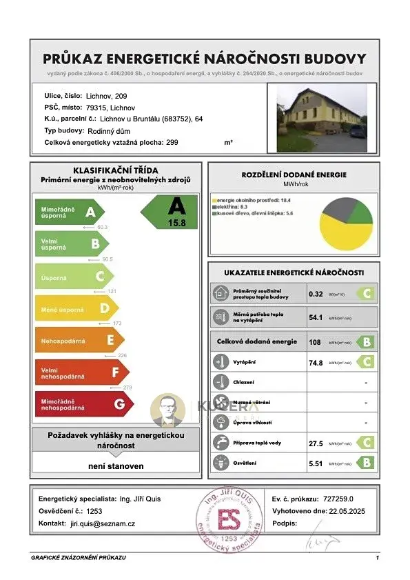 - pasivní rekuperace, fotovoltaika 9,45 kWp + baterie 14,21 kWh