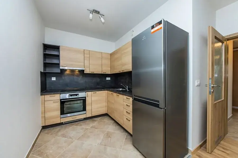 Byt je vybavený novou kuchyňskou linkou, sklokeramickou varnou deskou, troubou, lednicí a myčkou.