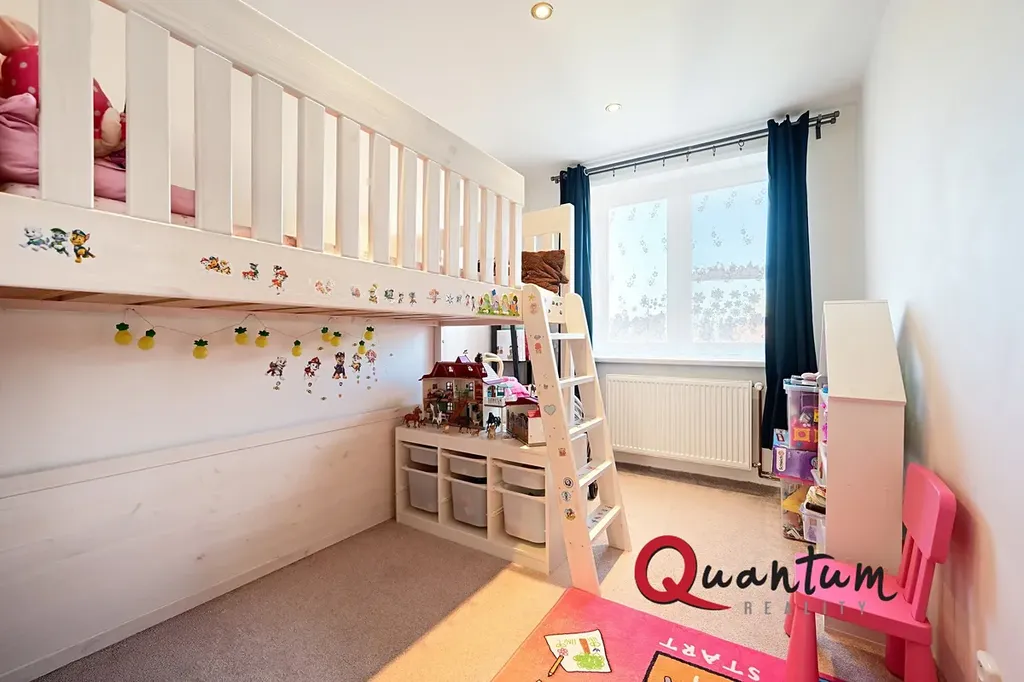 Obývací pokoj s parketovou podlahou je orientován na jih a východ, je krásně prosvětlený po celý den a nabízí vstup na zasklenou lodžii, která může sloužit jako příjemné místo k posezení nebo relaxaci. Kuchyně je od obývacího pokoje oddělena nízkou zídkou a je prakticky řešena tak, aby poskytovala dostatek pracovního prostoru. Z chodby se vstupuje do prostorné ložnice orientované na východ a do dětského pokoje s oknem na sever, oba pokoje mají parketové podlahy a klidnou atmosféru vhodnou k odpočinku i dětským aktivitám. Koupelna je vybavena sprchovým koutem, oknem a místem pro sušičku, toaleta je samostatná a vedle ní se nachází technická místnost s plynovým kotlem a připojením pro pračku.