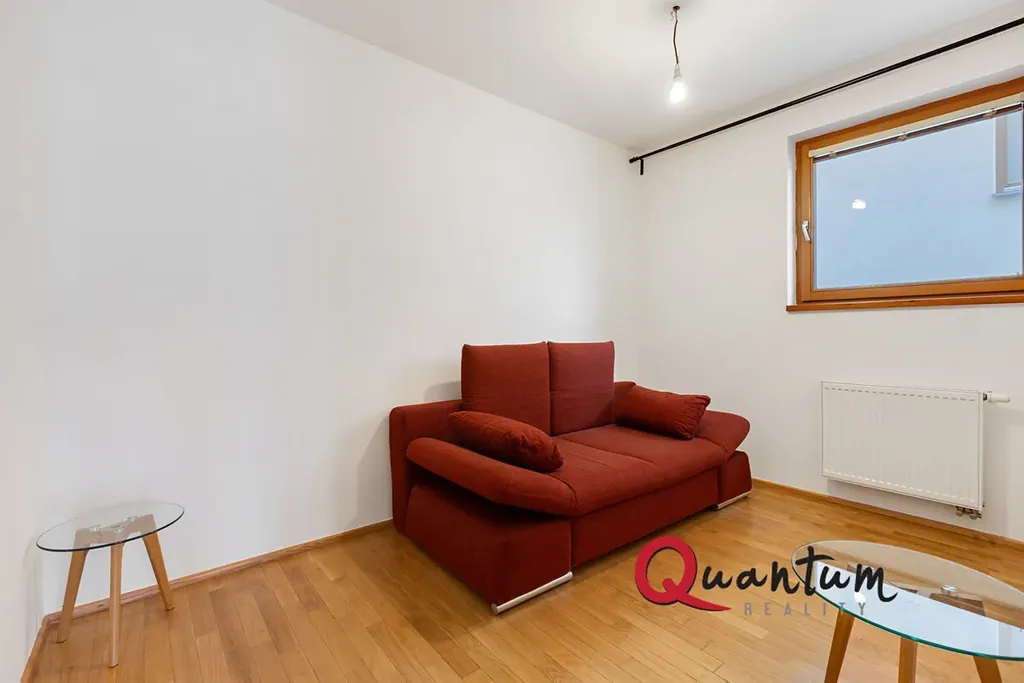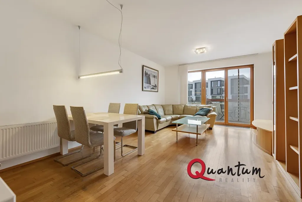 Interiér je řešen s důrazem na komfort a praktičnost. V obytných místnostech jsou kvalitní dubové parkety, které dodávají bytu teplo a eleganci. Kuchyňská linka je vybavena vestavěnými spotřebiči a kvalitní kamennou pracovní deskou a plynule navazuje na obývací část se vstupem na balkón. Balkón je vybaven výsuvnou markýzou, která zajišťuje příjemné posezení i v horkých letních dnech.