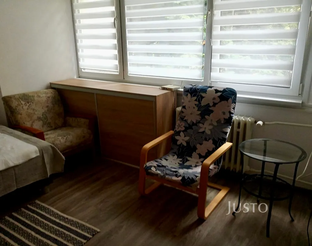 Byt je velmi dobře prosvětlený díky velkým plastovým oknům, která dodávají interiéru vzdušnost a příjemnou atmosféru. Dispozice nabízí obývací pokoj s posezením a televizí, menší, ale plně vybavenou kuchyň a koupelnu se sprchovým koutem. Byt se prodává včetně vybavení – je tedy vhodný jak k okamžitému nastěhování, tak i jako investiční příležitost k pronájmu.
