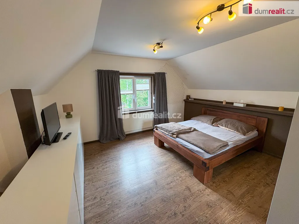 Interiér domu je moderně a vkusně zařízen. V přízemí naleznete prostorný obývací pokoj, jídelnu a kuchyňský kout, velkou koupelnu s toaletou, samostatnou toaletu a vstupní chodbu. V podkroví se nachází tři útulné ložnice, které poskytují dostatek prostoru pro rodinné bydlení.