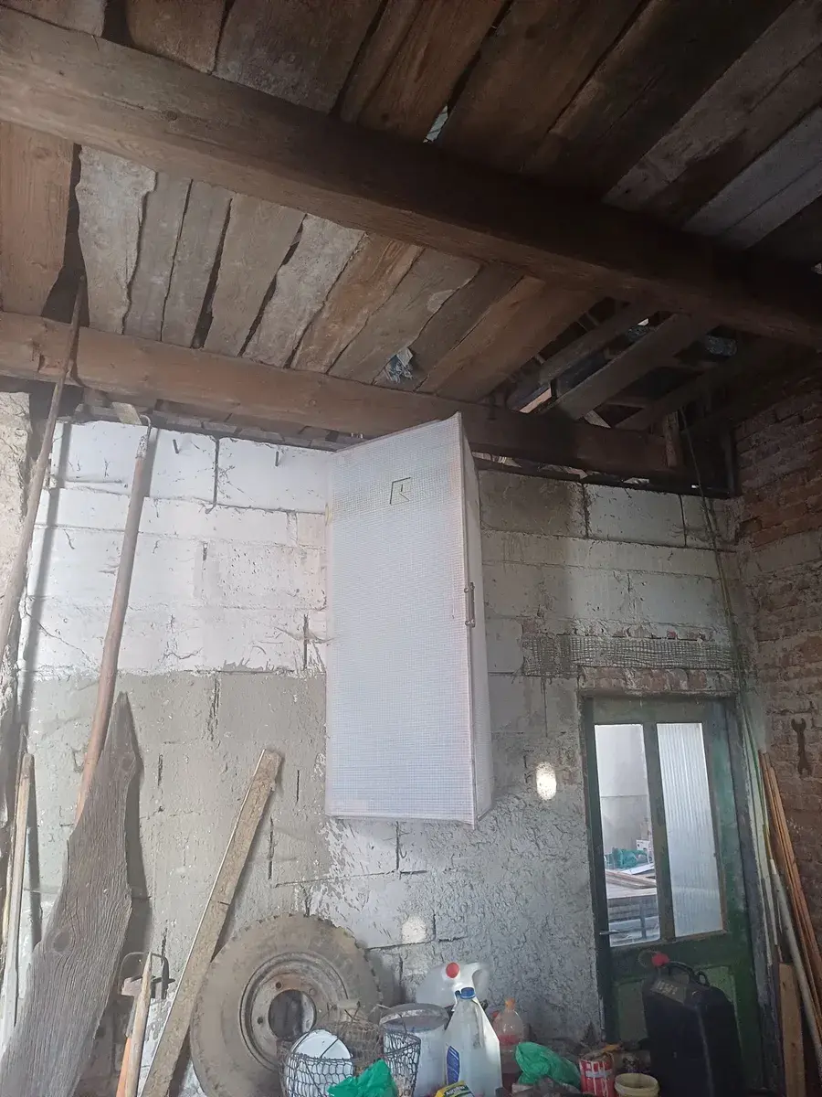 Stará část domu je původní, má stáří cca 150 let a výměru cca 200 m2, není obývaná, má kamenné základy. Vstup do staré části je přes vstupní předsíň, odkud je vstup do pokoje s krbovými kamny, který je také součástí ústředního vytápění domu, dále je část neizolovaná, tedy bývalá kuchyně, komora a dále konírny, kde se chovaly domácí zvířata. Jsou zde klenuté stropy, původní omítky, místnost slouží jako skladiště. Odtud je vstup do prosklené verandy s velkým krbem, odkud je vstup na půdu po původních dřevěných schodech a vstup do sklepa. Na verandě se ukládá zahradní nábytek, nářadí a je odtud vstup na vydlážděný dvůr a zahradu. Konírna je původní, s opadávajícími omítkami, nezaizolovaná, slouží jako skladiště.
