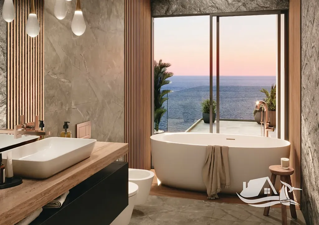 Dominantou apartmánu je prostorná terasa o výměře přibližně 18 m² s panoramatickým výhledem na moře. Tento prostor přirozeně rozšiřuje obytnou plochu a vytváří ideální zázemí pro klidné ráno s kávou, odpočinek během dne i večerní posezení s přáteli. Terasa výrazně zvyšuje komfort bydlení a zároveň podporuje dlouhodobou hodnotu nemovitosti i její atraktivitu pro pronájem.