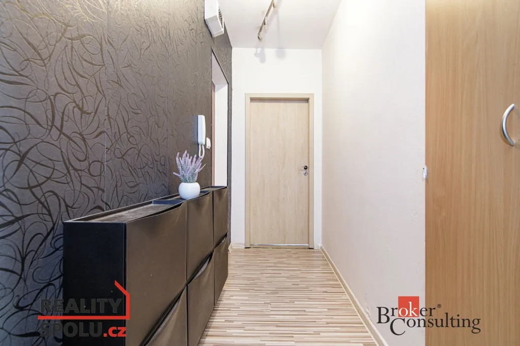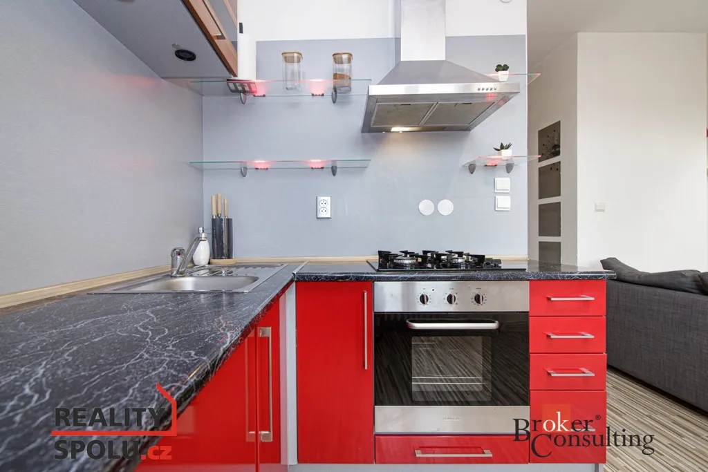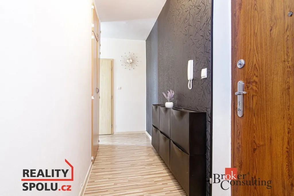 Byt prošel kompletní a vkusnou rekonstrukcí a nabízí příjemné bydlení s promyšlenou dispozicí. Dominantou je obývací pokoj s kuchyňským koutem, dále ložnice s prostornou šatnou a koupelna s toaletou. K bytu náleží také sklepní kóje, která poskytuje další úložný prostor. Byt zůstává i částečně vybavený: masivní postel včetně roštu, trouba, televize, lednice což umožňuje pohodlnější stěhování do nového domova.