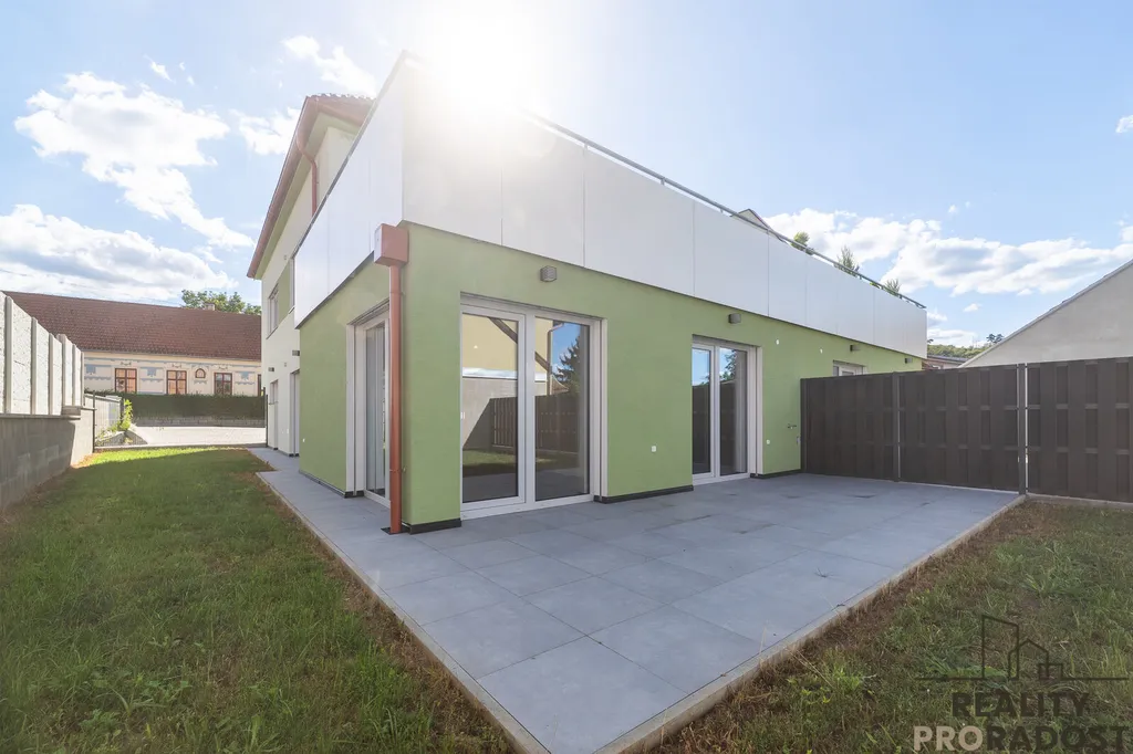 Novostavba je tvořena čtyřmi samostatnými bytovými jednotkami. Nabízený byt má výhodu vlastního vstupu, předzahrádky a je ideální kombinací rodinného bydlení s nízkými provozními náklady.