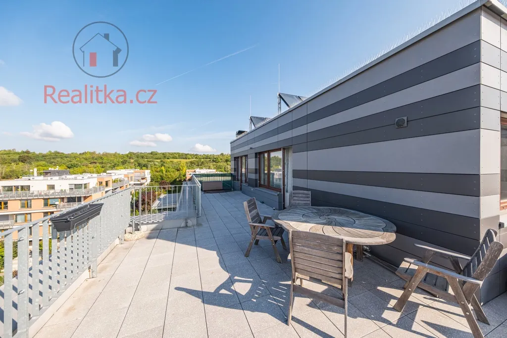 Tento byt představuje vzácnou příležitost pro ty, kteří hledají luxusní bydlení s mimořádným venkovním prostorem v klidné a zároveň dobře dostupné lokalitě Prahy.