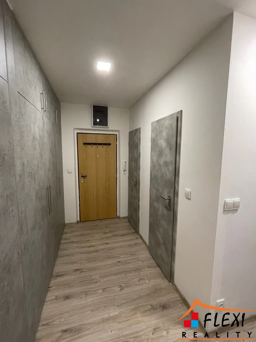 Velkou výhodou bytu jsou jeho samostatné prostorné pokoje a dostatek úložného místa v chodbě.