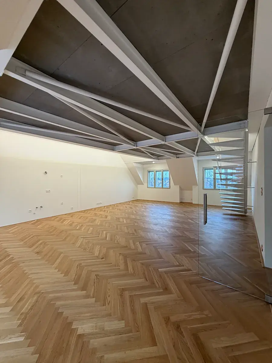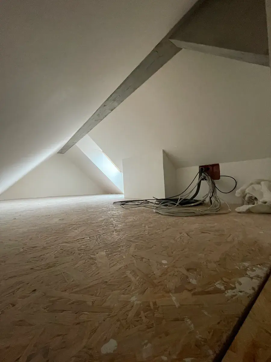 Přestože se byt nachází v podkroví, jeho interiér působí překvapivě civilně a komfortně. Architektonická práce s prostorem potlačuje obvyklé limity podkrovního bydlení – převládají rovné linie, plnohodnotná výška stropů a klasická okenní otvorová konstrukce. Byt je nově dokončen po kolaudaci a připraven k citlivému dotažení v individuálním interiérovém stylu nového majitele.