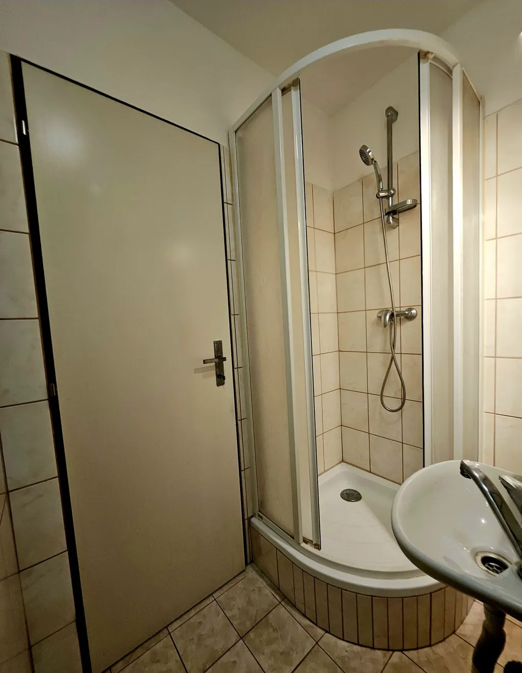 Byt se nachází ve 2. patře bytového domu a je řešen velmi prakticky. Hlavní obytná místnost plní funkci obývacího pokoje i ložnice, což nabízí dostatek soukromí i pohodlí. Koupelna je vybavena sprchovým koutem a toaletou. V chodbě se nachází vestavěná skříň, která poskytuje praktický úložný prostor.
