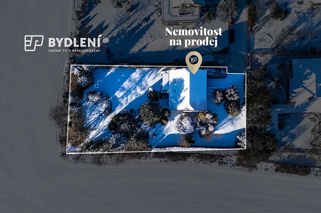 Dům se nachází v Zahořanech, přibližně dvacet pět minut jízdy od Prahy, na konci slepé ulice, což zajišťuje klid, minimum provozu a ničím nerušené výhledy do okolní přírody. Právě kombinace dostupnosti hlavního města a absolutního soukromí je dnes velmi vzácná.