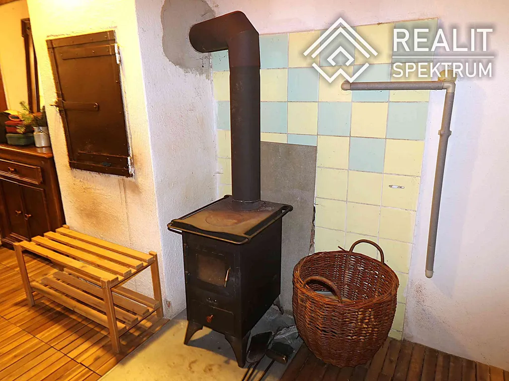 • Vytápění: Krbová kamna ( komín je vyvložkovaný) + v patře mobilní elektrické přímotopy s dálkovým ovládáním (zatopíte si mobilem ještě před odjezdem z domova).