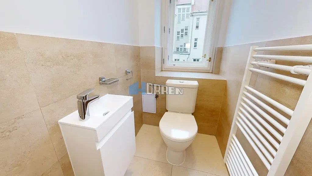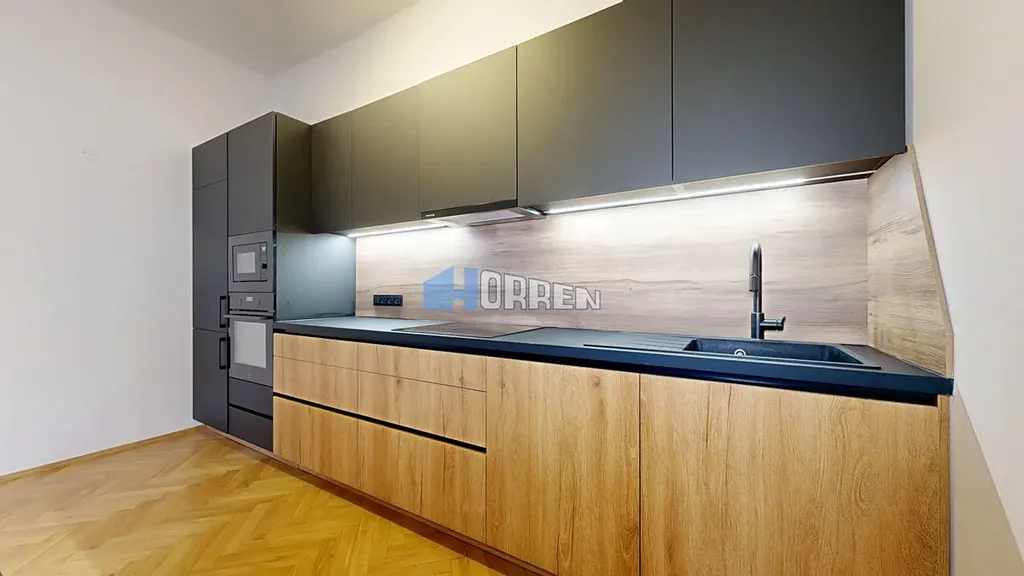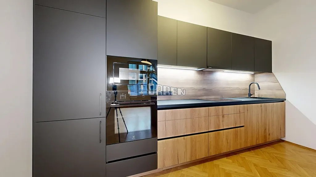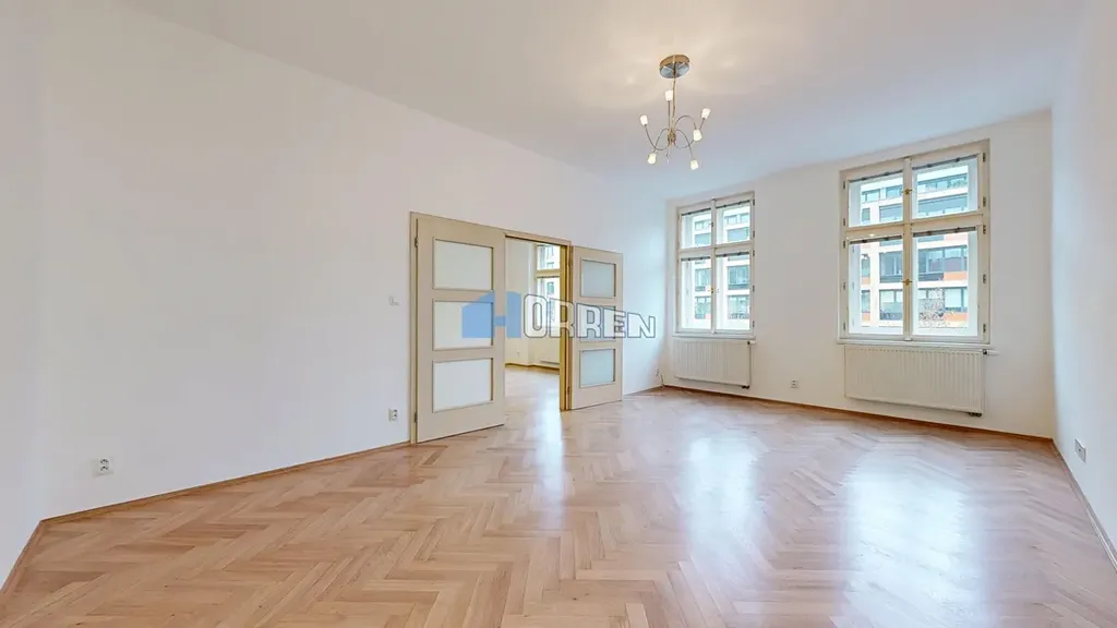 Nabízíme k pronájmu velký byt po rekonstrukci 5+1 s halou a balkonem - 168 m2 v centru Karlína, téměř u metra Křižíkova. Byt je situován do 3.patra cihlového domu s výtahem, s výhledem jednak do ulice Pobřežní, na nové administrativní budovy a dále pak do dvora obytného bloku. V bytě jsou k dispozici 2 koupeny s vanou i sprchovým koutem a praktickými otopnými žebříky. Prostorná kuchyně nabízí dostatek místa i pro větší jídelní stůl. Otevřením posuvných spojovacích dveří nám s obývacím pokojem vznikne krásný prostor téměř 50 m2.V bytě jsou vybudovány 2 šatny. Byt je nezařízený, pouze s plně vybavenou kuchyní se spotřebiči Philco (vestavěná lednice s mrazákem, varná deska, myčka, elektrická a mikrovlnná trouba, pračka..). Topení a teplou vodu zajišťuje plynový kotel Bosh. Podlahy pokrývají parkety a keramická dlažba. Vnitroblok na pavlačích je během roku osázen květinami a stěny jsou porostlé popínavými rostlinami. Dále je možnost parkování ve dvoře za poplatek 2.000 Kč+ DPH. V okolí je plná občanská vybavenost, metro a zastávka MHD je 1 min chůze. Sportovní i kulturní vyžití je v okolí bytu. Výhodné je i spojení s Holešovicemi novou lávkou. Volné ihned, Prohlídky po domluvě.