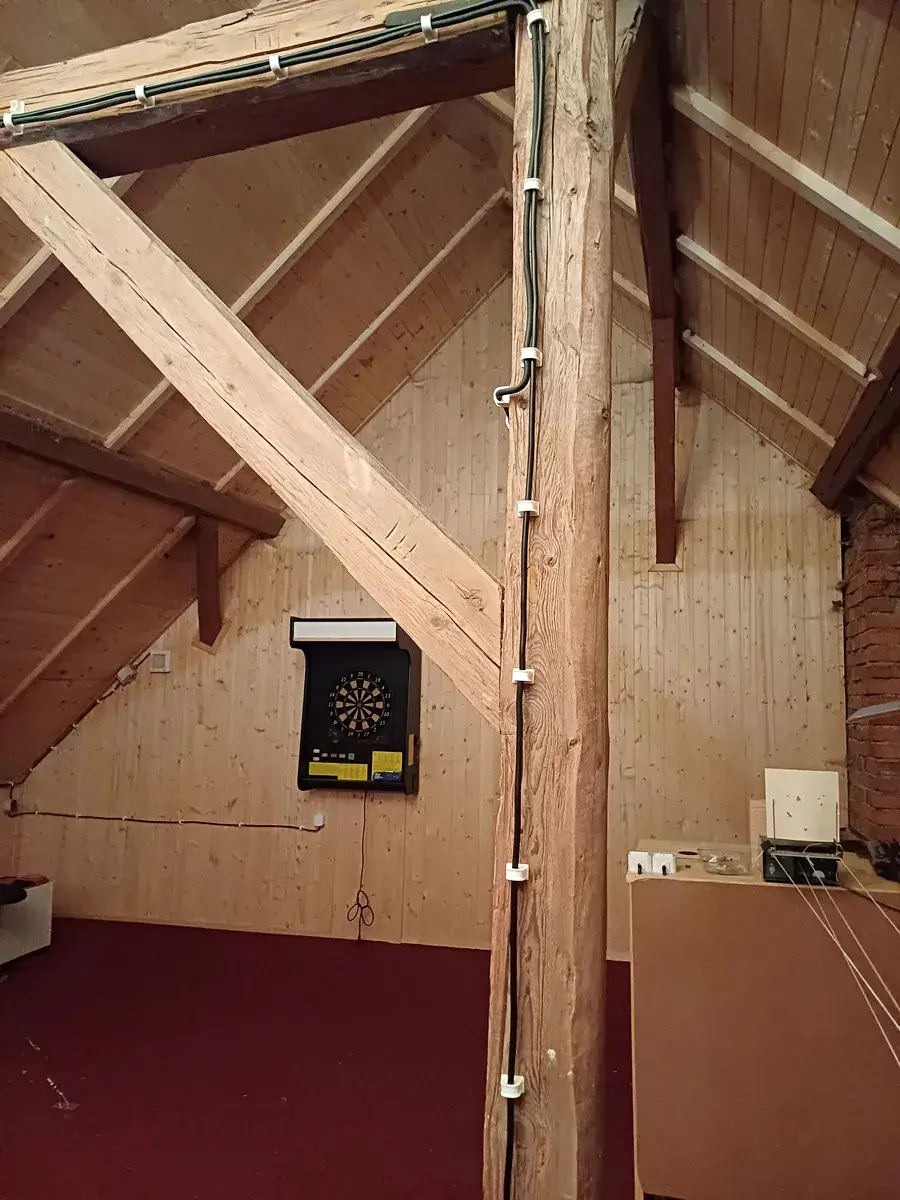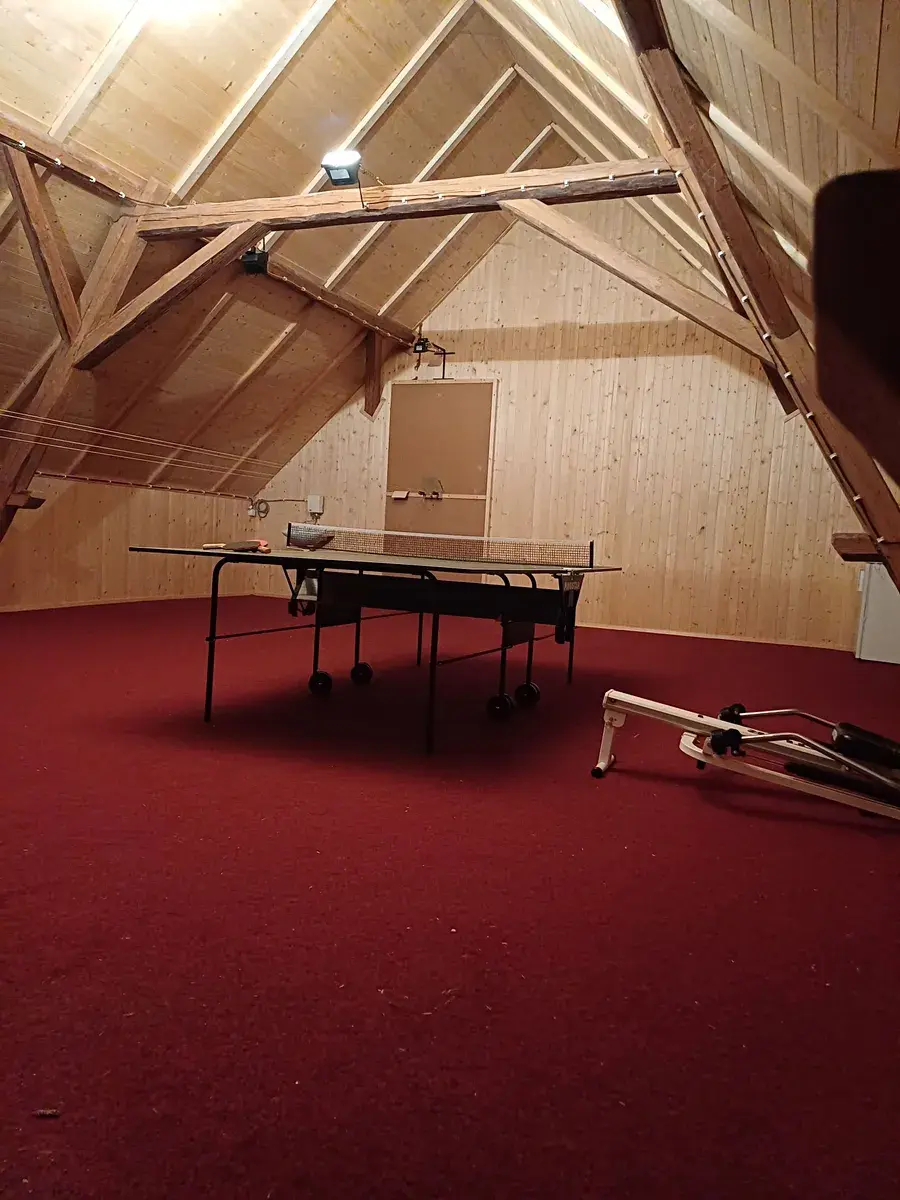 Stavba dílny má vybavenou dílnu s dvěma pracovnami, 2 garáže s výsuvnými vraty a s vybudovaným podkrovím, které je přístupné výsuvnými schůdky.