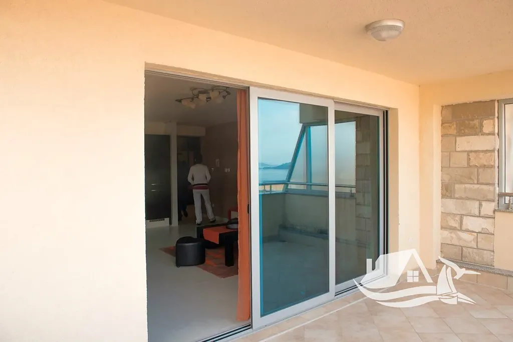 Apartmán má celkovou plochu přibližně 100 m², disponuje prostornou terasou s výhledem na moře a součástí je také garáž, což výrazně zvyšuje komfort i hodnotu nemovitosti.