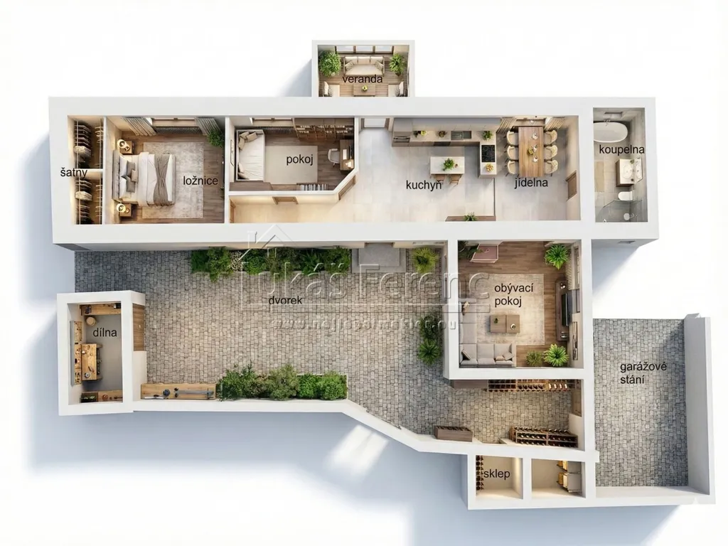 Na pozemku se nachází dílna, garážové stání a další úložné prostory. Uzavřený dvůr poskytuje dostatek soukromí a klidné zázemí pro každodenní život i relaxaci.