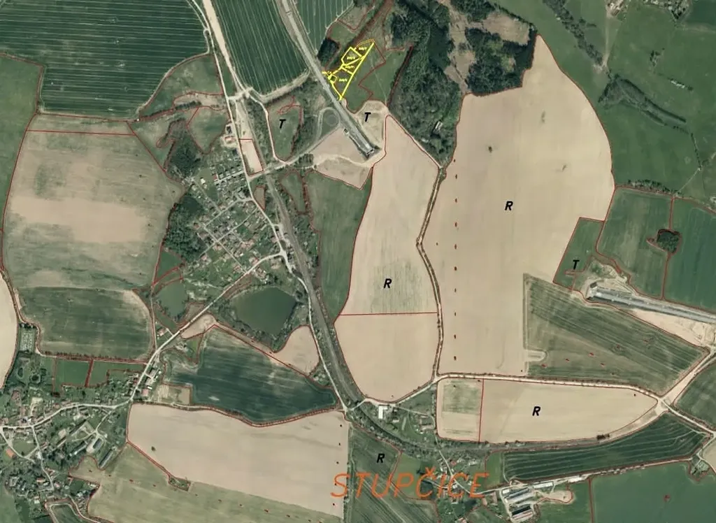 Předmětem dražby jsou pozemky o celkové výměře 8 388 m2 u obce Stupčice. Jedná se o soubor