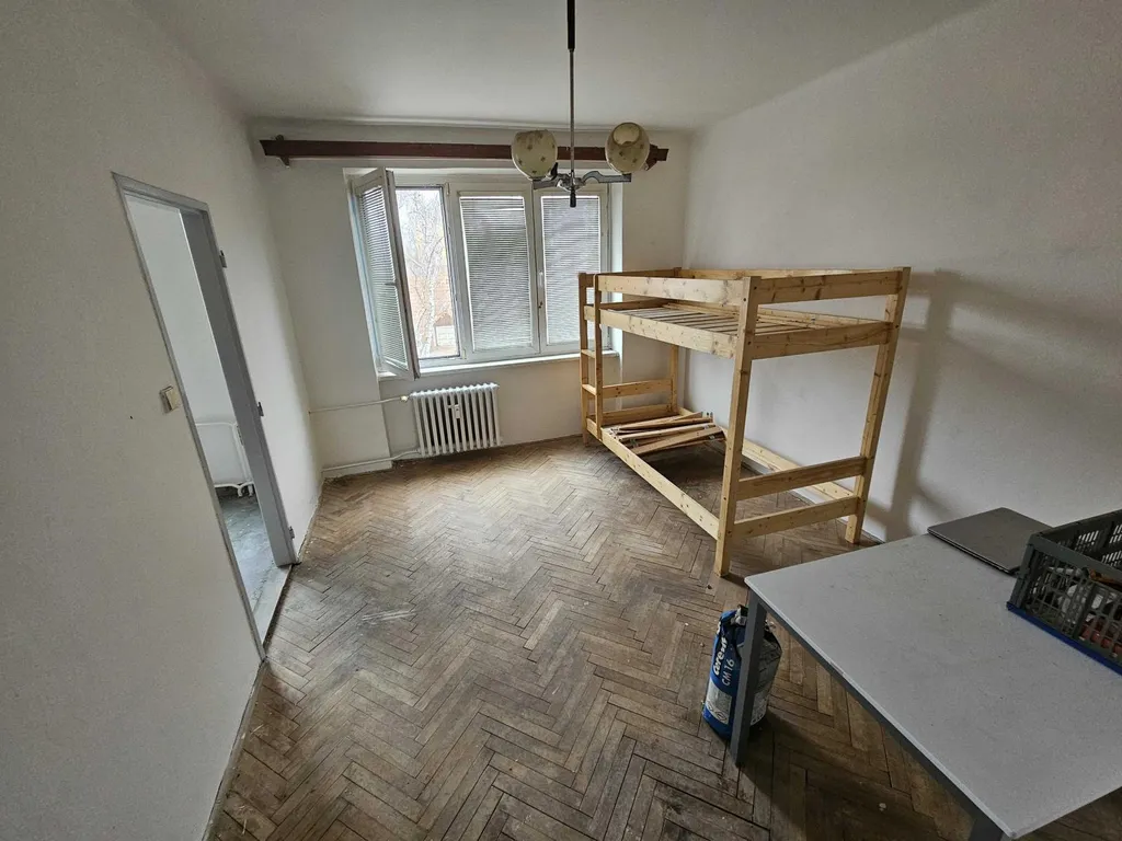 Při vstupu do bytu se dostanete na centrální chodbu, ze které pak následně do jednotlivých pokojů. Byt disponuje samostatnou kuchyní, obývacím pokojem, ložnicí a také dětským pokojem. Bytové jádro je ještě původní, umakartové. Součástí bytové jednotky je také balkon s orientací do klidné části, směrem k přilehlé školce. K dispozici je samostatná toaleta a koupelna s vanou.