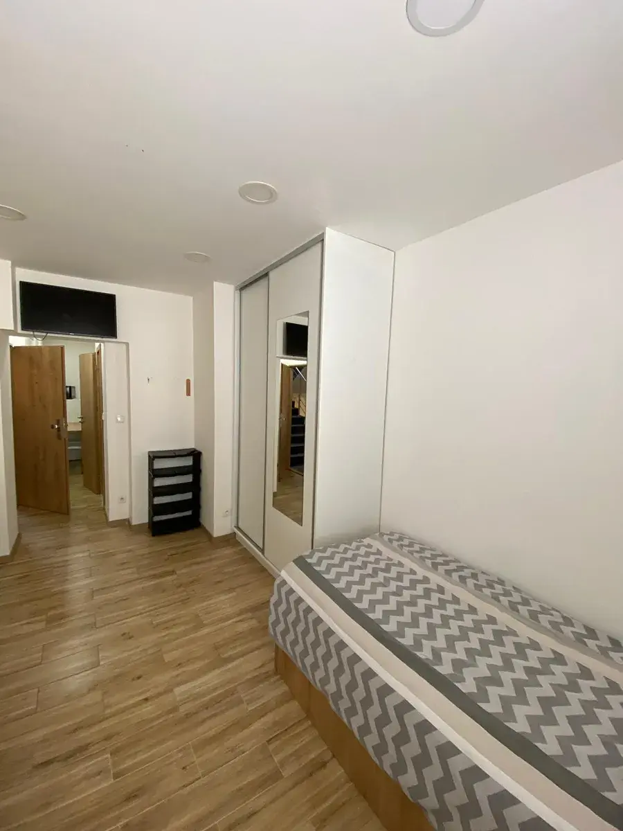 Dispozice a vybavení: Kuchyňský kout se spotřebiči (lednice, varná deska, digestoř). Velkou výhodou je klimatizace. V pokoji je vestavěná skříň, stůl, 2 židle, TV a dvě postele s kvalitní matrací s polštářem, přikrývkou, plachtou a povlečením. Koupelna se sprchovým koutem a WC.