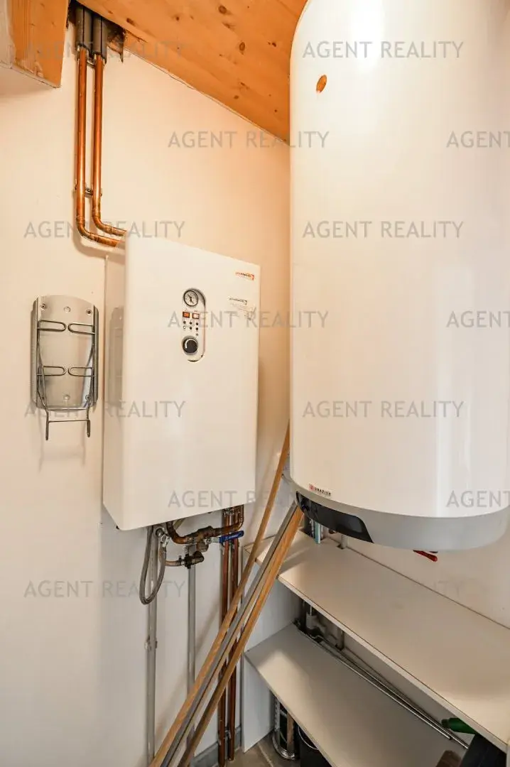 Vytápění elektrickým kotlem se zásobníkem a krbová kamna v obývacím pokoji. Dům je velmi dobře izolovaná dřevostavba s nízkými provozními náklady.