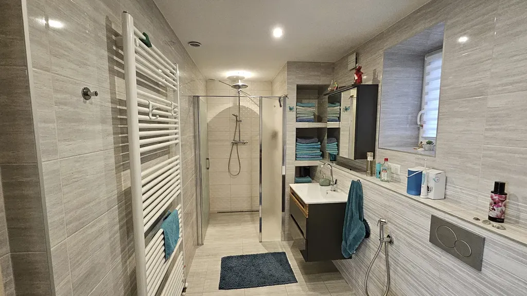 Pozemek o rozloze 403 m2 zahrnuje také praktickou zahradu, která nabízí skvělé možnosti pro relaxaci nebo zahradničení. Užitná plocha domu činí 217 m2, což zajišťuje komfortní uspořádání interiéru. Pro vaše vozidla je připravena garáž s jedním parkovacím místem a další dvě místa na parkování jsou k dispozici přímo před domem.
