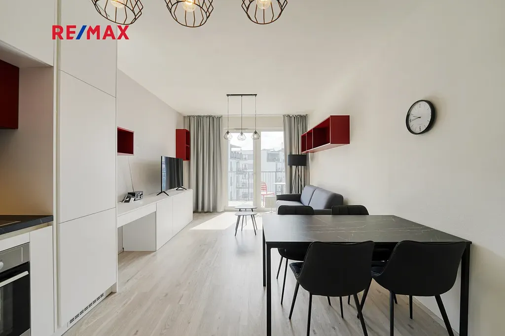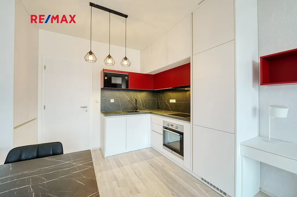 Tento byt je kompletně vybaven a připraven k okamžitému nastěhování, navíc veškeré vybavení bytu a jeho atmosféra je naprosto netknutá, jelikož v bytě zatím ještě nikdo nebydlel. Velmi kvalitní vybavení je v designovém provedení "na míru" od designového studia Arbyd. Je navrženo s množstvím praktických úložných prostor včetně značkových zabudovaných spotřebičů a vše je v bytě uspořádáno tak, aby byl využit každý cm². Podlaha - Dub Corton bílý; Obklad – odstín obkladu světle béžový a spárovací hmota jasmínová; Dlažba světle béžová a spárovací hmota jasmínová. Byt se pronajímá bez gauče, stolu a židlí na fotografiích.