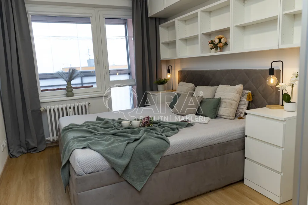 Velkým benefitem bytu je zasklená lodžie, která rozšiřuje obytný prostor a nabízí příjemné místo jak pro ranní kávu, tak pro večerní sklenku vína. Za hezkého počasí se zde otevírá výhled až na Lysou horu, což dodává bydlení jedinečnou atmosféru.