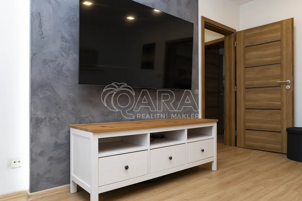 Byt je umístěn v 8.NP v panelovém domě s výtahem a před pěti lety prošel rekonstrukcí. Nabízí praktické a funkční dispoziční řešení, které poskytuje dostatek prostoru jak pro společné rodinné chvíle, tak pro klid a soukromí. Díky velkým oknům je byt příjemně světlý a působí vzdušně. Prostorná kuchyň v rustikálním stylu potěší každého, kdo si rád užívá vaření.