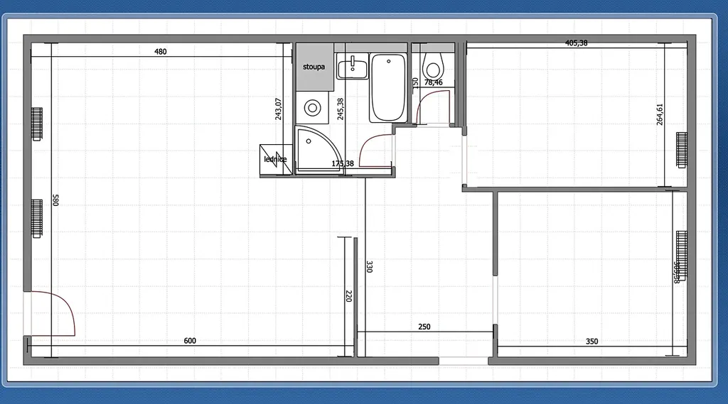 Výhodou je také komora o ploše 2 m² přímo naproti vstupu do bytu, která nabídne skvělý dodatečný úložný prostor. Celkem výměry 78m2 : 70m2 byt + 6m2 balkon + 2m2 komora.