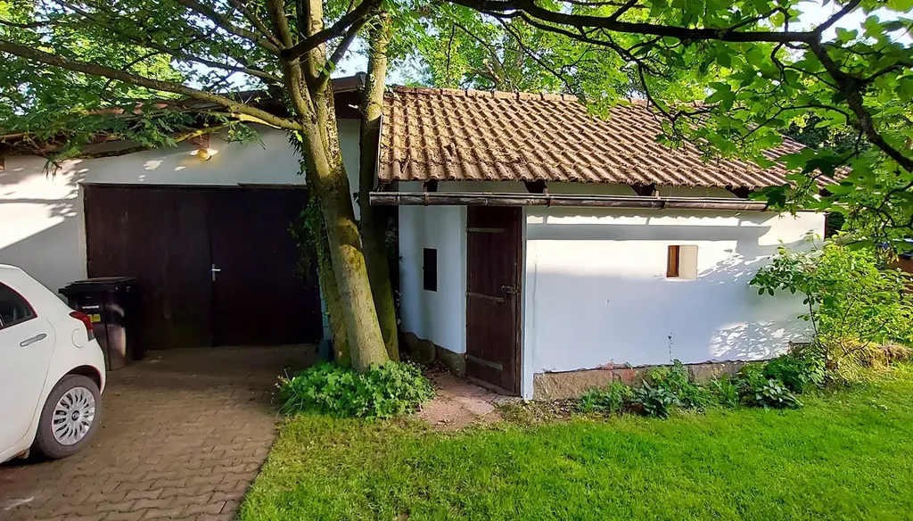 Součástí prodeje je kompletně vybavená kuchyně, nábytek i zařízení. Zastavěná plocha domu činí 150 m². K dispozici je také garáž o 55 m², kolna 12 m², venkovní posezení s grilem a bazén – perfektní místo pro odpočinek a volný čas.