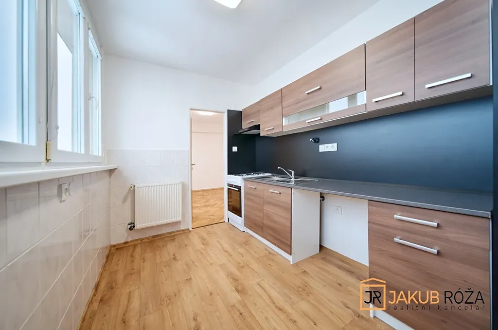 Byt o velikosti užitné plochy 65,7 m2 + lodžie o výměře 2,6 m2 a dispozici 3+1 je umístěn v 8. podlaží osmipatrového zděného domu s výtahem. Dispozice bytu: vstupní chodba, koupelna, samostatné wc, obývací pokoj, ložnice s lodžií, pokoj, kuchyň. Okna jsou situovaná na východ. Byt je ve výborném stavu, udržován, nová kuchyňská linka, vymalováno, nově lakované parkety, plastová okna. Topení a ohřev vody je teplárnou. Parkování je možné před domem.