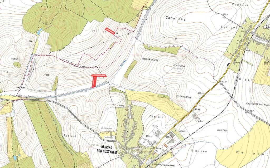 k. ú. Hlinsko pod Hostýnem: parc. č. 982, 985, 987, list vlastnictví 44