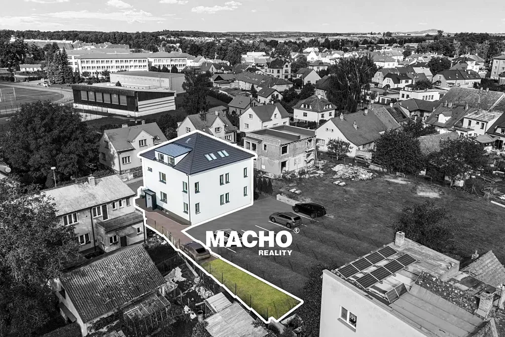 K jednotce náleží sklep o ploše 16,42 m2, zahrada 66,92 m2 a jedno parkovací stání.