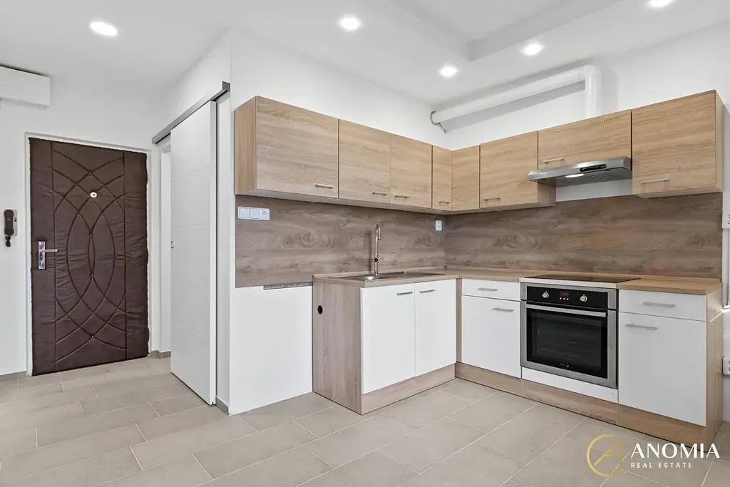 Byt disponuje velkorysou a prostornou kuchyní, která je vybavena novou kuchyňskou linkou včetně spotřebičů. Součástí je indukční varná deska, vestavná trouba, nechybí ani připravené připojení pro lednici a pro pračku. Koupelna je řešena v moderním a vkusném designu, který doplňuje sprchový kout. V bytě jsou položeny kvalitní vinylové podlahy a keramická dlažba.