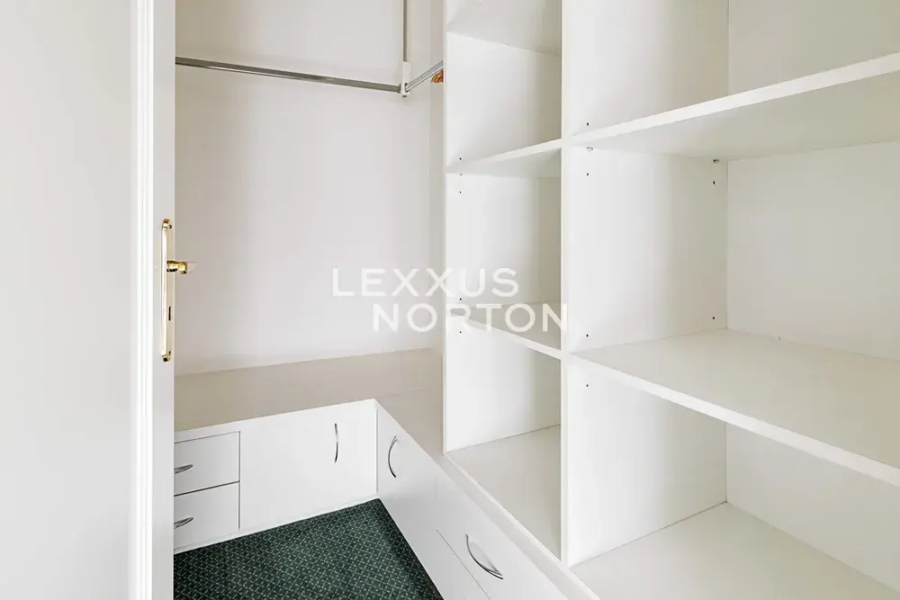 Tento světlý zařízený byt k pronájmu dispozičně nabízí vstupní chodbu, prostorný obývací pokoj, plně vybavenou kuchyň, dvě ložnice, dvě koupelny a dvě šatny.